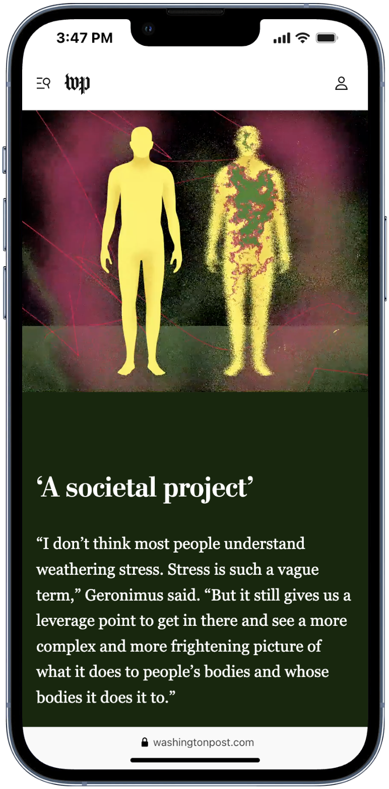 As a Design Editor at The Washington Post, I assigned digital projects to designers; provided feedback throughout the process (from Figma iterations and UX/UI considerations of bespoke components to the final design and art direction of the page); worked in concert with editors and reporters to shape the storytelling; helped shape photo edits; ensured that the work met the highest standards of design; and developed retrospectives that used data analytics to inform future decisions.