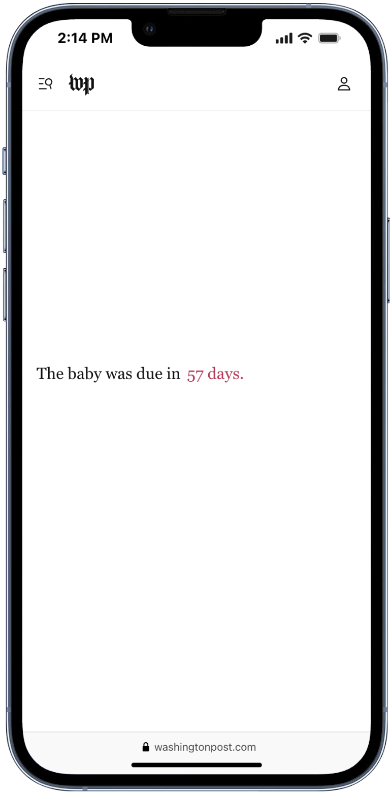 For this beautiful story about life and death, we mostly wanted to stay out of the way. We implemented a countdown to build anticipation in an effort to drive readers down the page.
