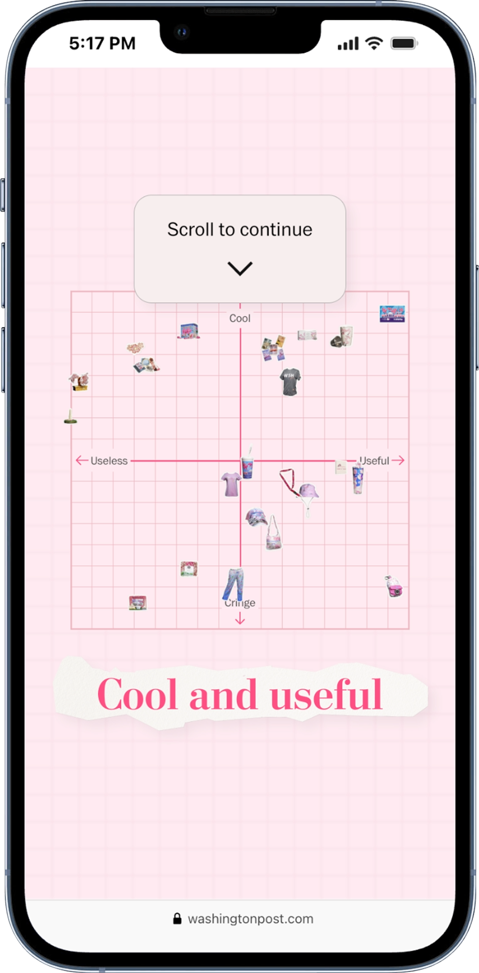 We used a grid matrix to bucket a series of items in four categories. When this story was pitched, we discovered that there was a matrix component in development — just waiting to be used. After finessing, the tool’s delightful nature matched the playful tone of the story.