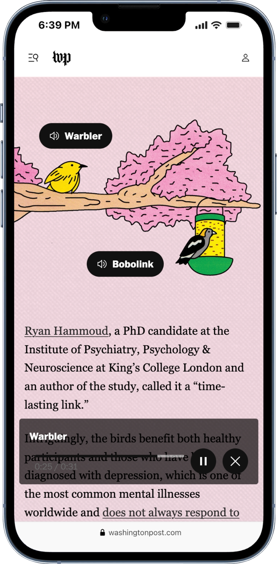 Getting readers to engage with audio on the Post site was difficult — even when the stories were about audio. In this case, the whimsical illustrations and easy-to-use audio components went a long way in keeping reader interest.